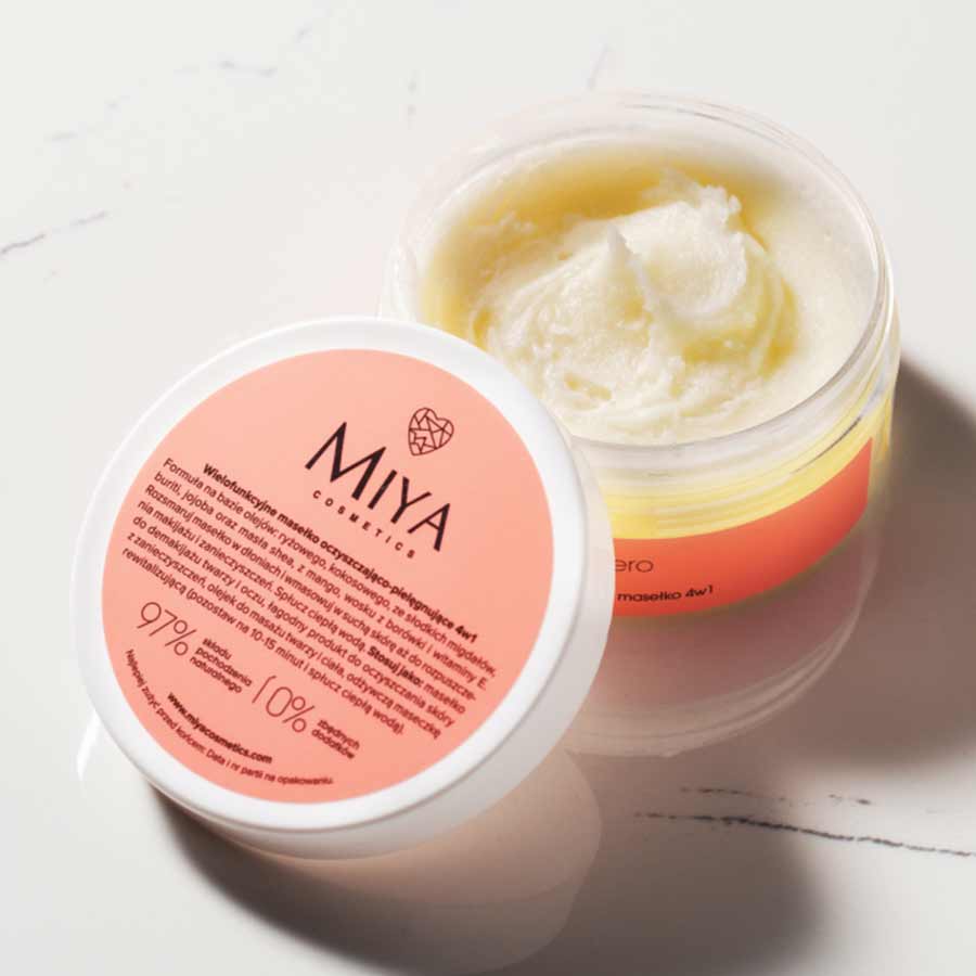 La manteca desmaquillante 4 en 1 myCLEANhero de Miya disuelve rápidamente el maquillaje, elimina eficazmente las impurezas y deja la piel tersa y suave. Para todo tipo de piel, especialmente para personas con piel sensible del rostro y piel del contorno de ojos.